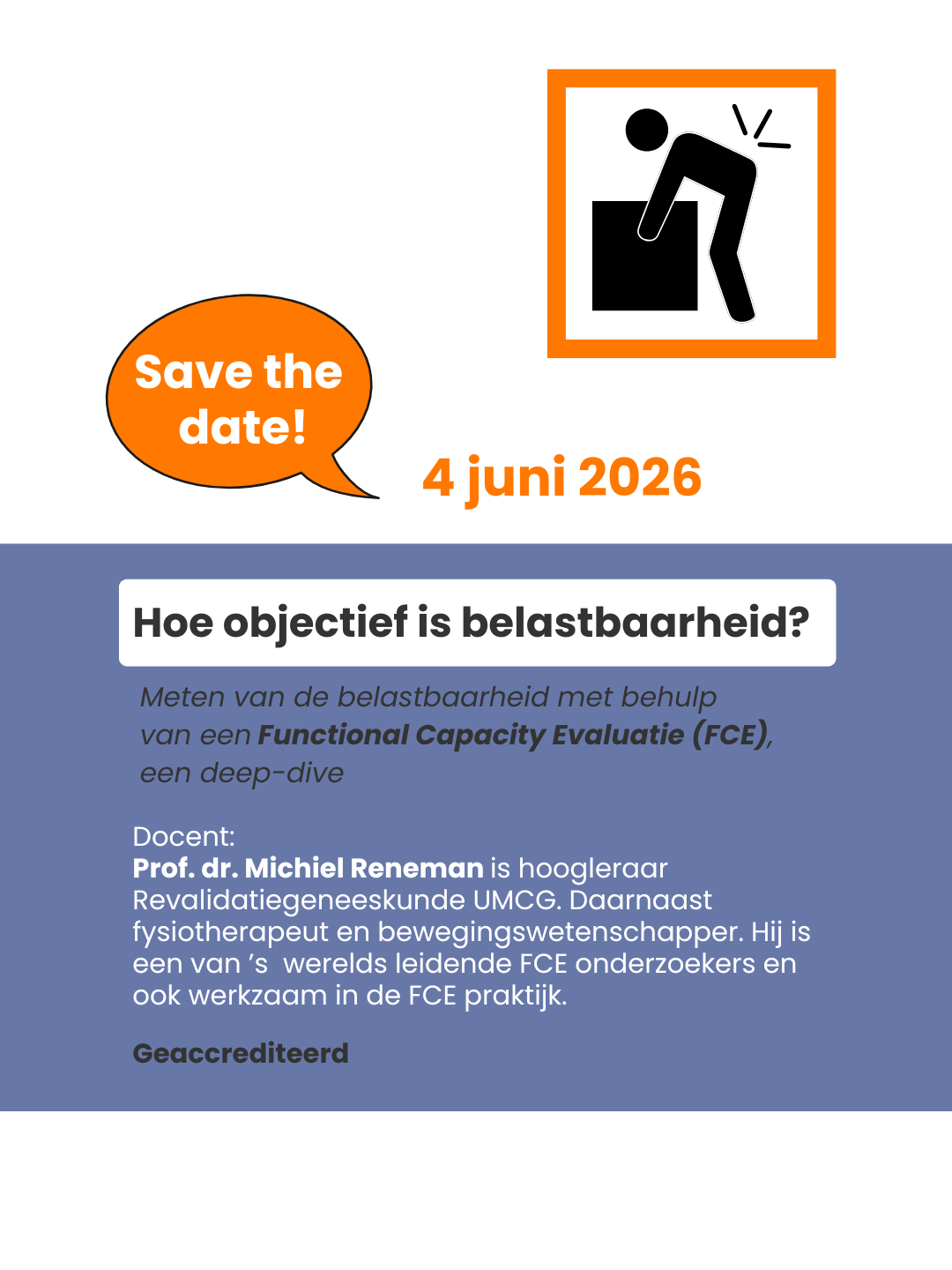 Geaccrediteerde nascholing FCE 𝐒𝐚𝐯𝐞 𝐭𝐡𝐞 𝐝𝐚𝐭𝐞 | 𝟒 𝐣𝐮𝐧𝐢 𝟐𝟎𝟐𝟔 | 𝐍𝐚𝐬𝐜𝐡𝐨𝐥𝐢𝐧𝐠 𝐅𝐂𝐄 𝐇𝐨𝐞 𝐨𝐛𝐣𝐞𝐜𝐭𝐢𝐞𝐟 𝐢𝐬 𝐛𝐞𝐥𝐚𝐬𝐭𝐛𝐚𝐚𝐫𝐡𝐞𝐢𝐝 𝐞𝐢𝐠𝐞𝐧𝐥𝐢𝐣𝐤?En hoe vertaal je fysieke capaciteit verantwoord naar